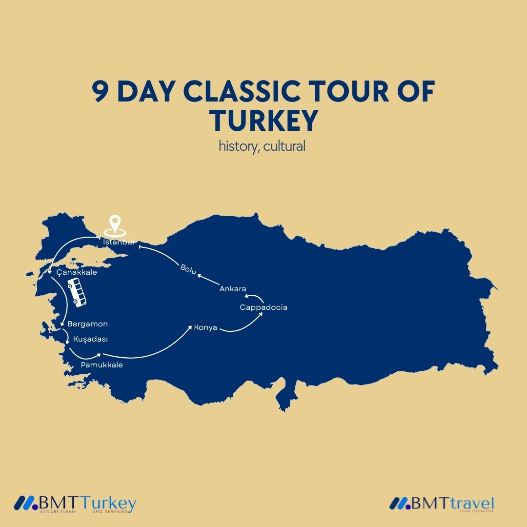 10 Cities : Istanbul, Canakkale, Bergama, Kusadasi, Selcuk, Pamukkale, Konya, Cappadocia, Ankara, Bolu